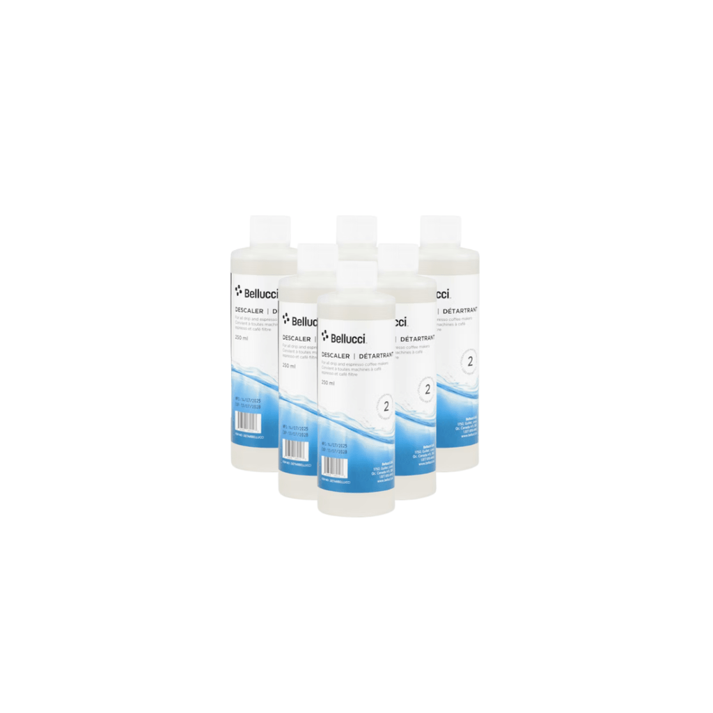 The water that goes into your machine contains minerals that will build up inside your espresso coffee machine. In order to preserve the quality of your espresso and cappuccino, it is recommended to use periodically the Bellucci descaling solution.